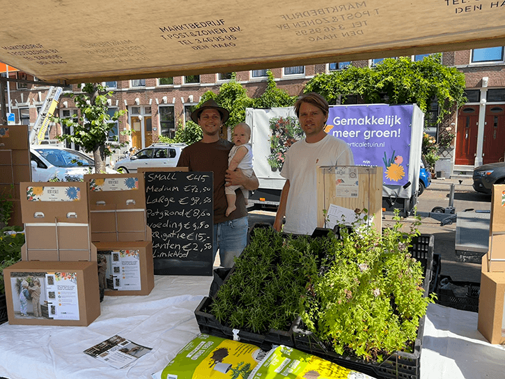 Floris had het idee om er een doe het zelf verticale tuin van te maken zodat het toegankelijk wordt voor huishoudens in Nederland. Met name de binnensteden in Nederland moeten groener vinden de vrienden.